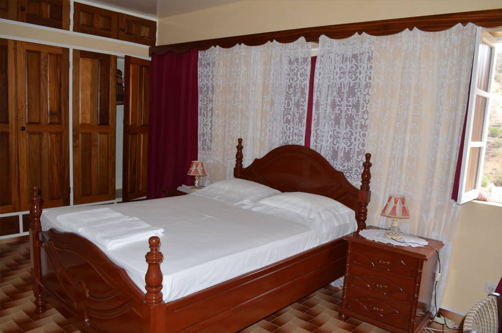 Com dez quartos, todos com casa de banho privado, água quente e frio, ar condicionado, TV e frigobar. Temos serviços de restaurante com deliciosos pratos tradicionais e outros á escolha do cliente. Assim como fazemos serviços de lavandaria. E ainda, se pode desfrutar de uma grande vista panorâmica para vila da Ribeira Brava, bem como o conforto de um ambientem familiar.